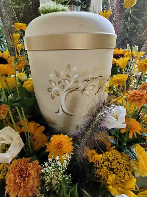 Ein Grab, einen letzten Gang mit Blumen zu schmücken ist eine alte und würdevolle Geste. So können Urnen und Särge mit Blume verzierrt werden. Jede Blüte mit Ihrer eigenen Botschaft läßt den letzten Gang etwas leichter Fallen.