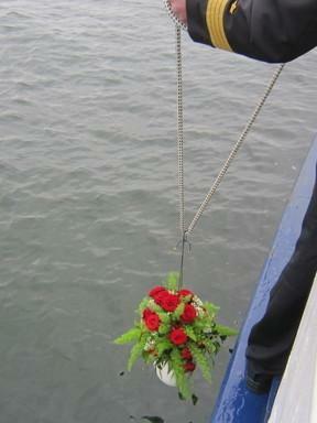 Auch im Falle einer Seebestattung wird die Asche des Verstorbenen zunächst in eine Urne gefüllt. In Anwesenheit der Trauergäste wird diese wasserlösliche Urne auf hoher See von einem Schiff aus dem Meer übergeben.